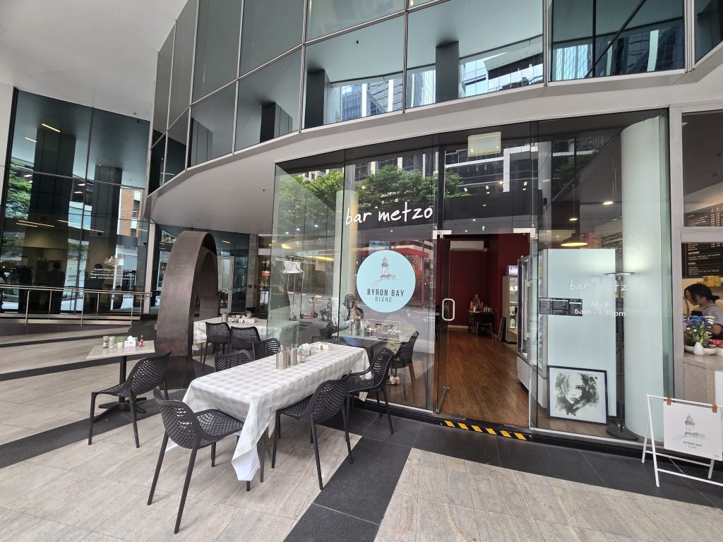 On the gound floor at 299 Adelaide Street, Brisbane, Bar Metzo is in the business end of the CBD which is part of its charm. It is an intimate setting with simple aluminum furniture that is kept scrupulously clean, a big plus in the food industry. The daily newspapers are available for newshounds, and our chatty staff, will keep you entertained.